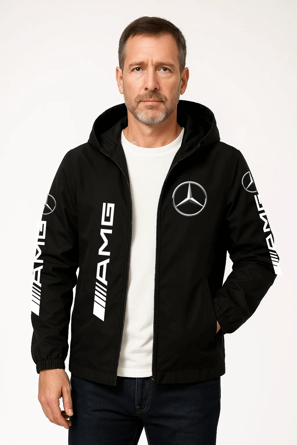 Windjack Motorsport "AMG" – verfijn je stijl met AMG-inspiratie. Deze ultralichte sportjas combineert bescherming tegen wind en lichte regen met een iconisch motorsportdesign – ideaal voor liefhebbers die prestaties en elegantie willen samenbrengen.